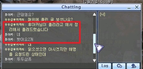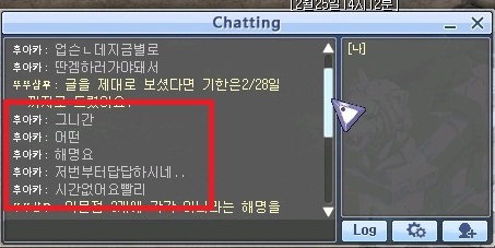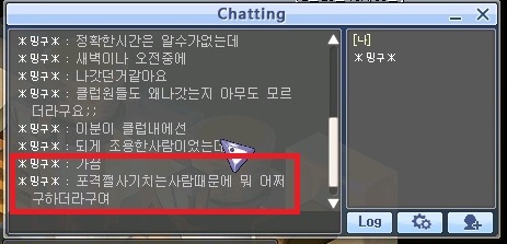 제가 가진 스크린샷과 후아카의 이중클이었던 아진 클럽의 장께서 제보해주신 내용입니다. 앞선 이유가 아니면 포격쩔하는 사람을 견제하기 위함인 듯 합니다.