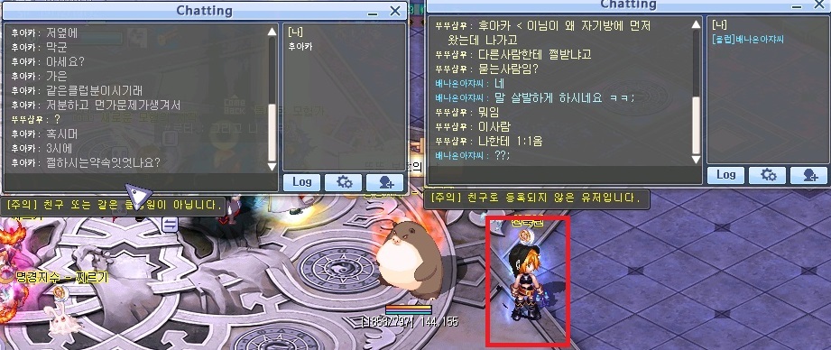 쩔을 받고자 후아카 방에 입장했다가 잠수길래 바로 나왔고 곧 다른 쩔러를 구했는데 대뜸 후아카로부터 1대1 메시지가 왔다는 것입니다. 자기 방에 먼저 왔으니까 본인한테 받아야 한다는 논리였습니다. 아무런 예약도 하지 않았는데도 말이죠.