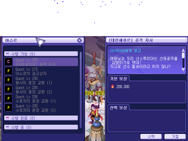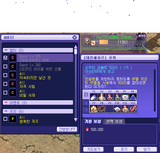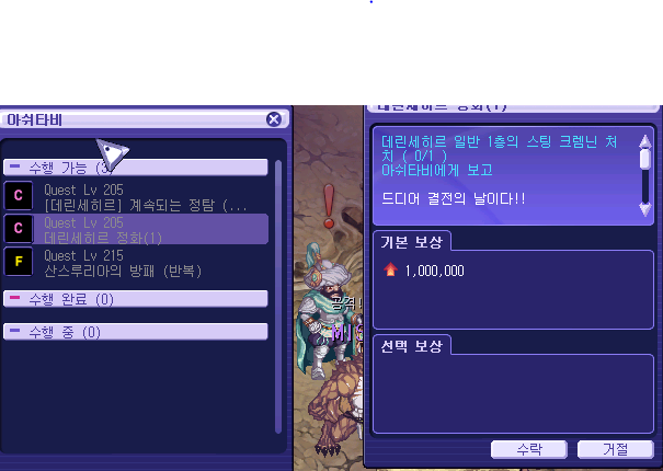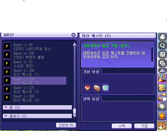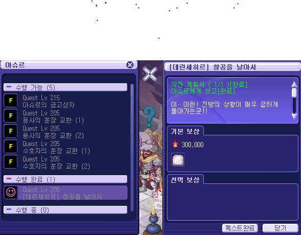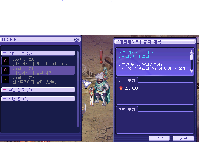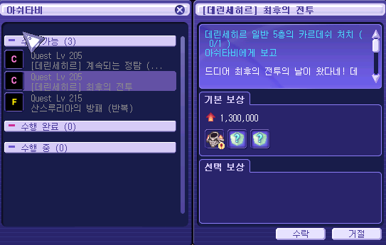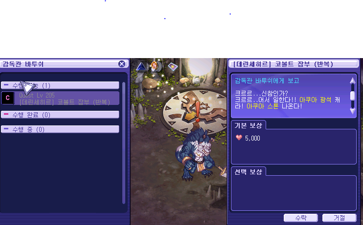 시작하는 NPC : 우측 하단 4번째 퀘스트 창