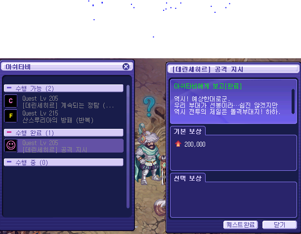 퀘스트 이름 : 산스루리아의 위기 + 미션퀘스트(2)