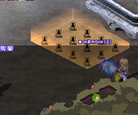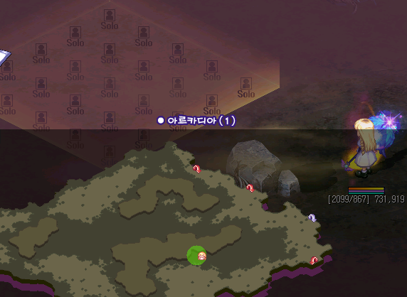 맵 오른쪽 위 아르카디아 중심부로 이동 후 워프로 들어갔다 다시 아르카디아(1)로 워프 이동