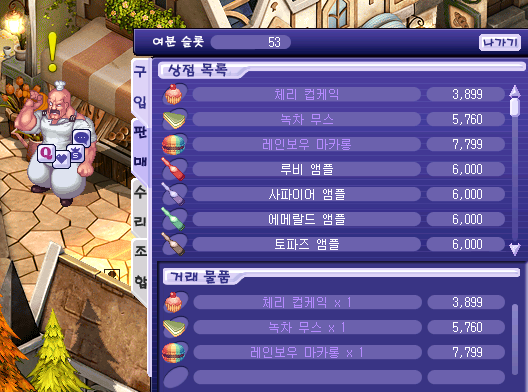 NPC 줄리앙에게 체리 컵케익 , 녹차 무스, 레인보우 마카롱 구매