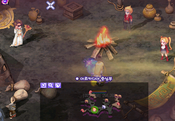 힐링웨이브 스킬을 쓰면서 파이어볼로 잡아주세요