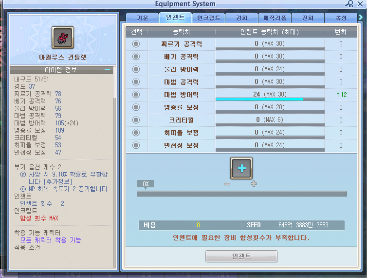 최종 마법방어력이 +24 여야 합니다 꼭 주의해서 인챈트 진행하세요