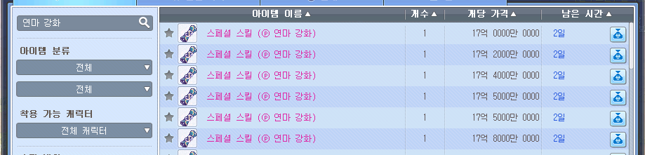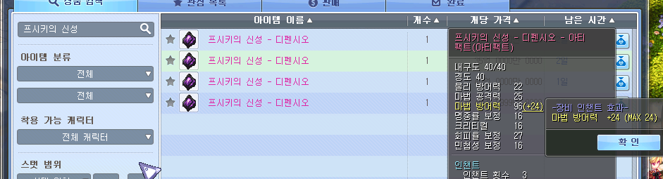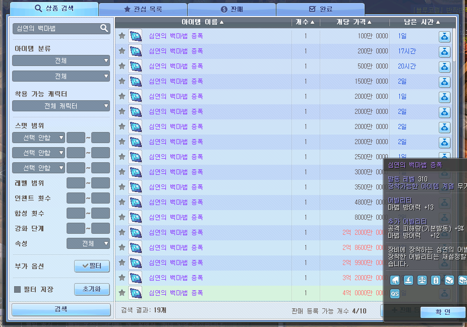 아이템거래소에 심연의 백마법 검색 >