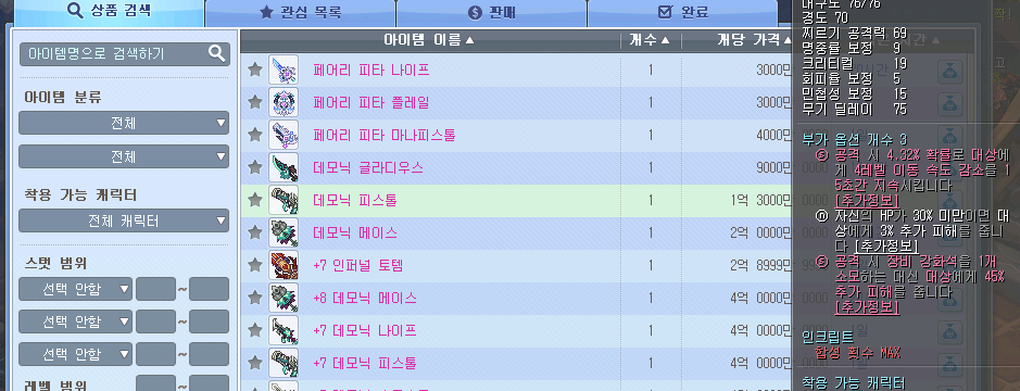 부가옵션이 달린 데모닉 장비를 5000만-1억시드에 구매하세요 ( 재판매 가능합니다 가격 기억해두세요 )