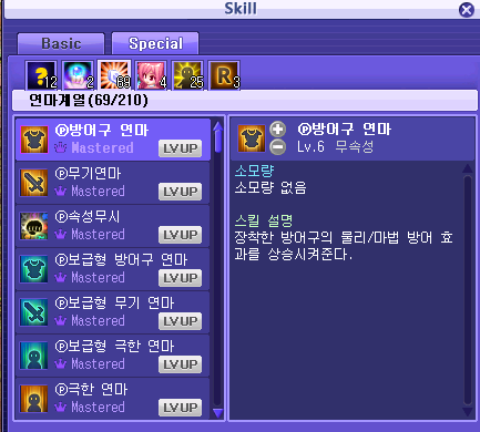 연마 강화를 섭취하시고, 스킬창 -special 로 들어가 각종 연마 스킬의 LV을 최대로 올려주세요!
