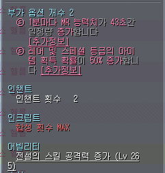 부여석 여유가 있다면 1분마다 MP 능력치가 ##초간 증가합니다 옵션을 달아주세요