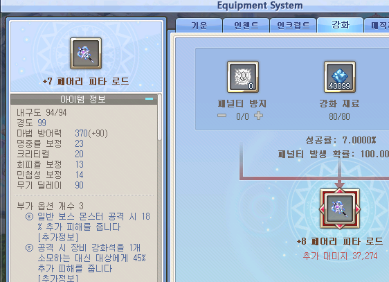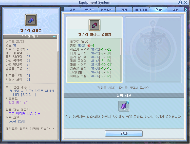 장비의 스텟을 올려서 강화하는 시스템입니다