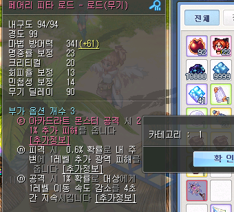 왼쪽 +에 일반보스 18% 부가옵션이 있는 데모닉 무기 장비를 등록