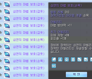 네냐플 NPC 쟝뷔앙을 통해 슬롯부여 후 구매한 심연의 백마법 증폭 장착