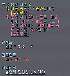 부가 옵션은 이동속도 6- 7 증가 ( 부여석 돌려서 뽑기 )