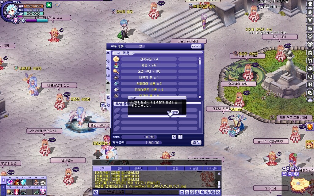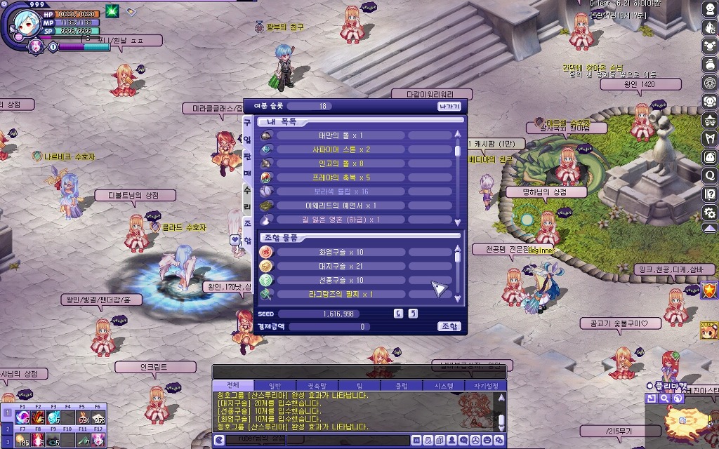 필요한 준비물 : (라그랑즈의 팔찌, 화염, 대지, 선풍구슬 10개씩 조합), 인고의돌 8개, 프레야의축복 5개, 다이아몬드스톤 3개,