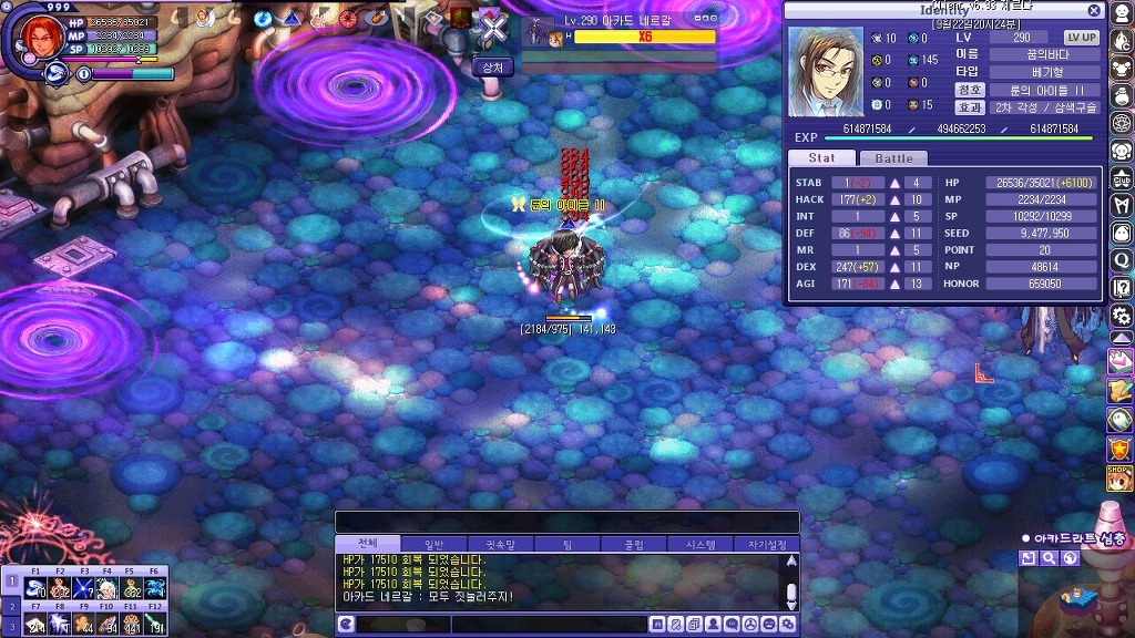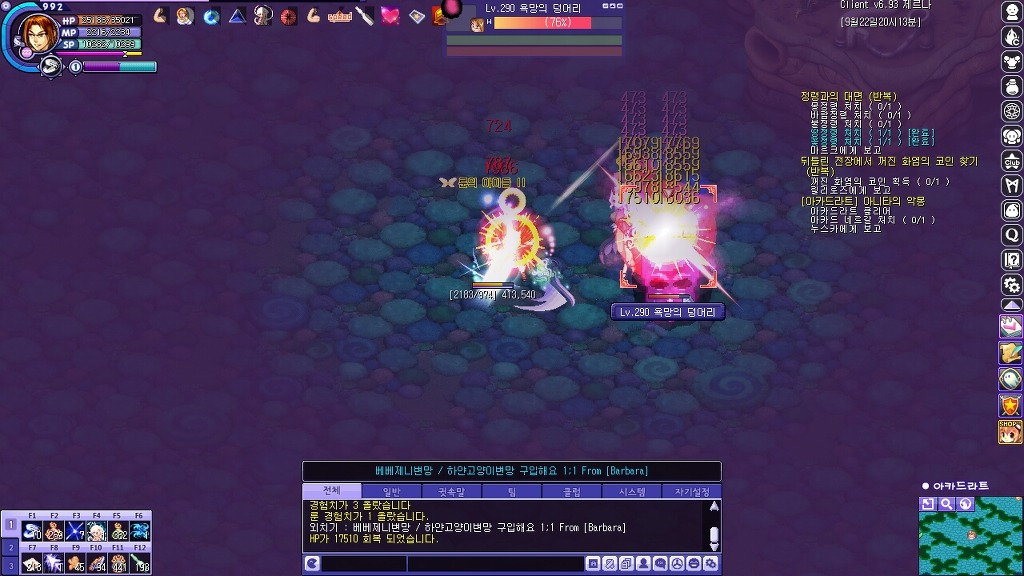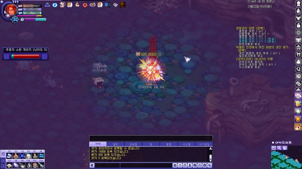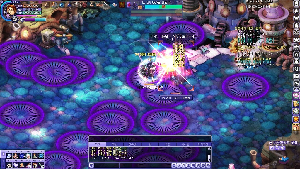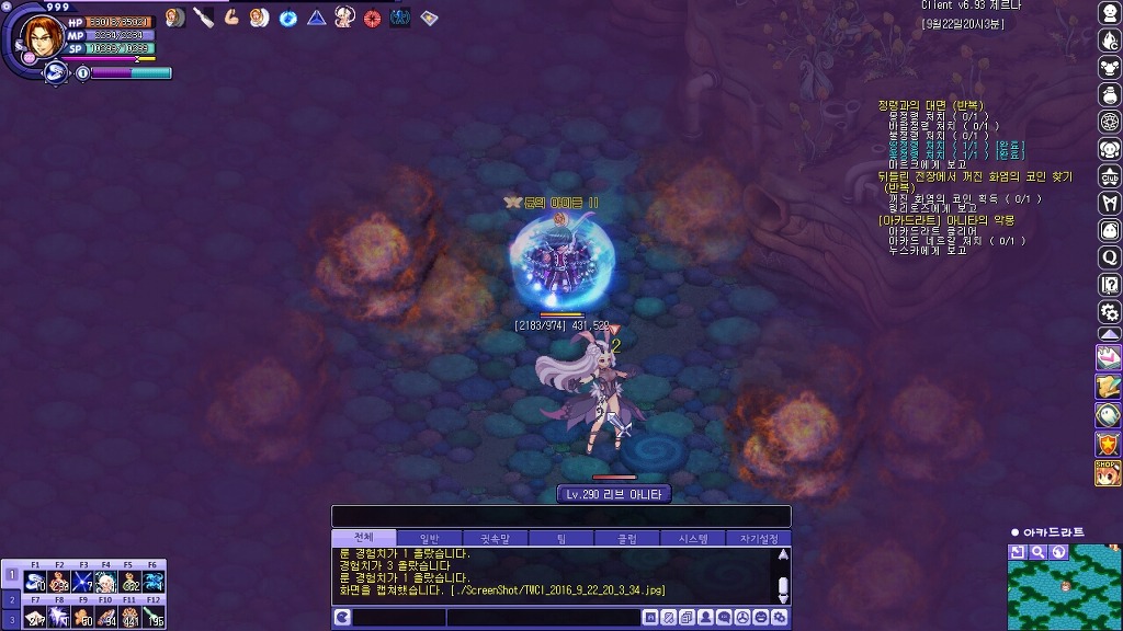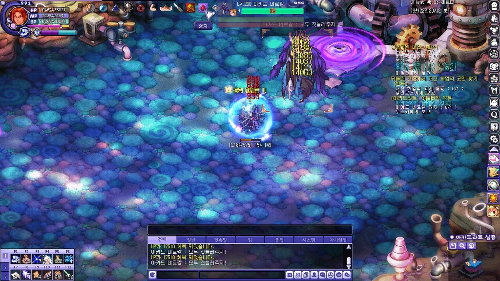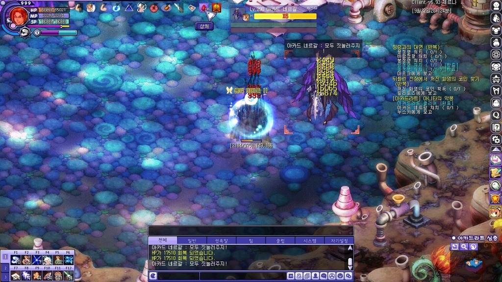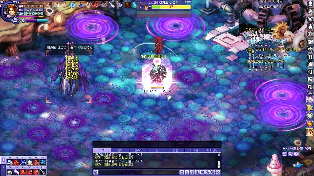 패턴1. 티르칼라그처럼 맵 전체에 운석(?)을 떨굽니다. 고정데미지 형태이며 티르칼라그와 마찬가지로 1만씩 체력이 감소합니다.