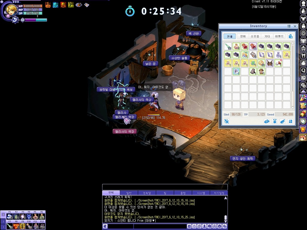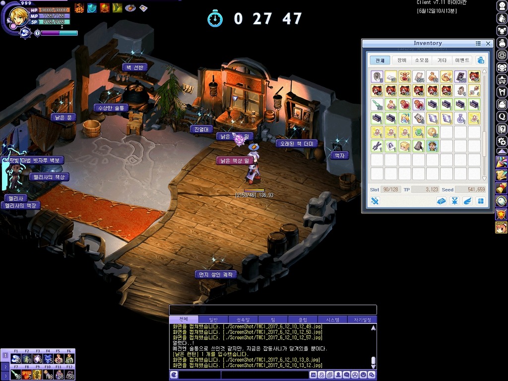액자, 오래된 책더미, 진열대,멜리사의 책상 오른쪽,보라빛 마법 빗자루 벽보는 마구잡이로 클릭(위의 품목을 얻기위함)
