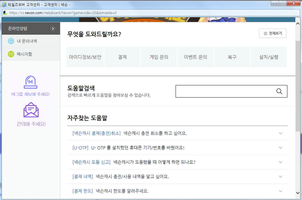 문의와 답변 사이 간극을 줄이기 위해 고객센터에서는 유저들이 쉽고 빠르게 문제를 해결할 수 있도록 자주 하는 질문과 해결방안을 제시합니다.