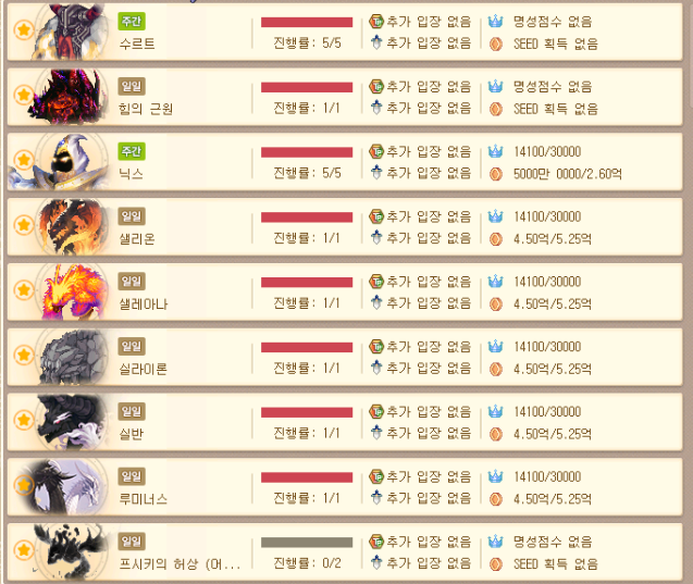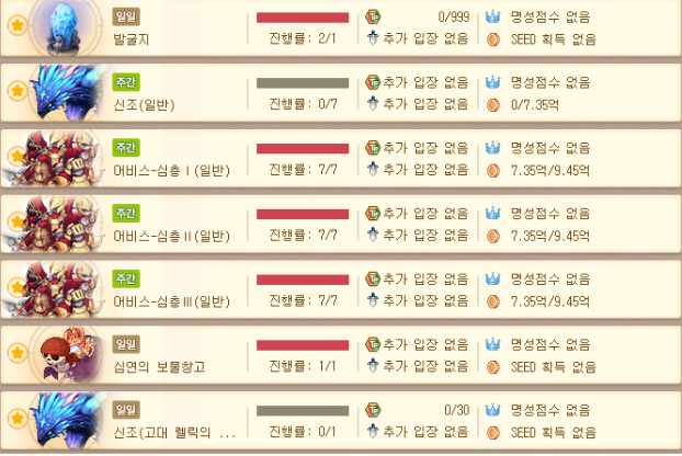 어벤5 / 룬던 / 코어던 / 허상 / 팔색조 요 정도 추가로 조금씩 해주고 있는데