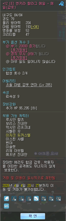 착용 중인 아퀼떡작인데 여기서 돈모아서 갑옷을 어비스(?)쪽으로 바꿔주면 될까요 ?