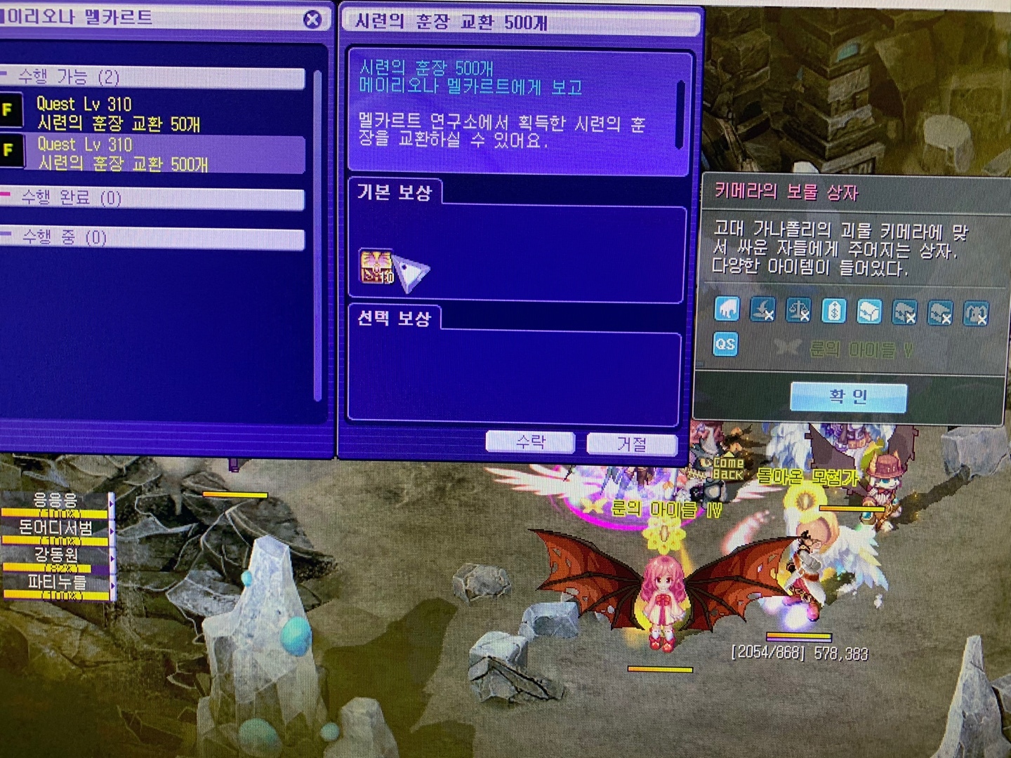 클리어 시 훈장 20개 ㅡ 50개당 키메라상자 1개 교환가능