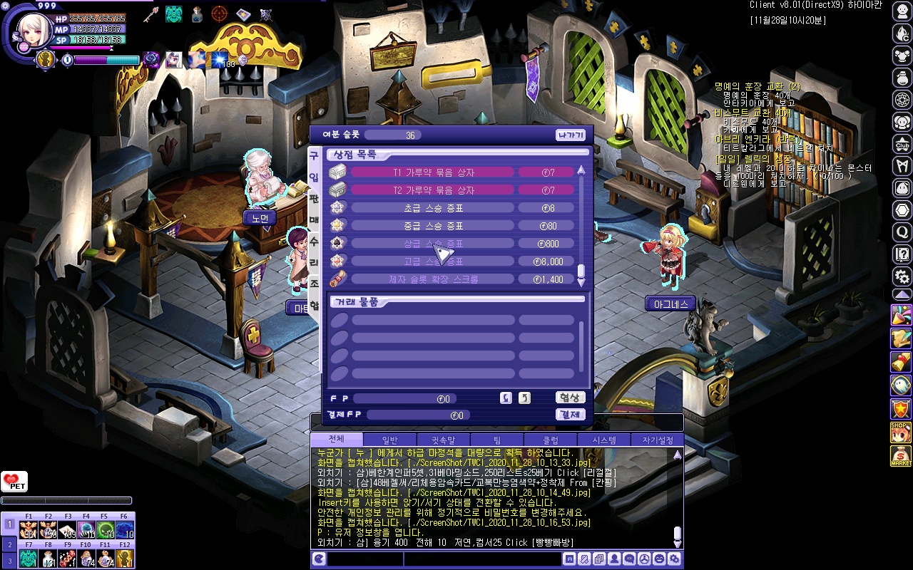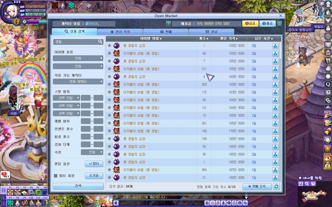 예전의 개인상점 시스템을 강화한거라고 보시면 되시는데 왼쪽 상단에 경험이라 치고 엔터를 누르시면