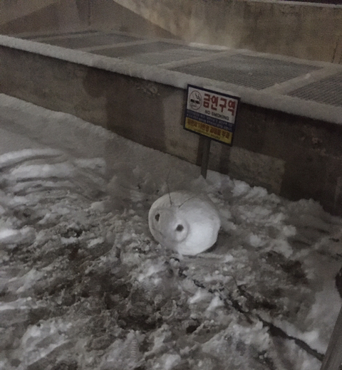 몇 년만에 쏟아진 눈은 초딩때도 눈사람은 잘 안만들었던 다 큰 성인을 자정가까이 되는 시간에 움직이게 만드네요
