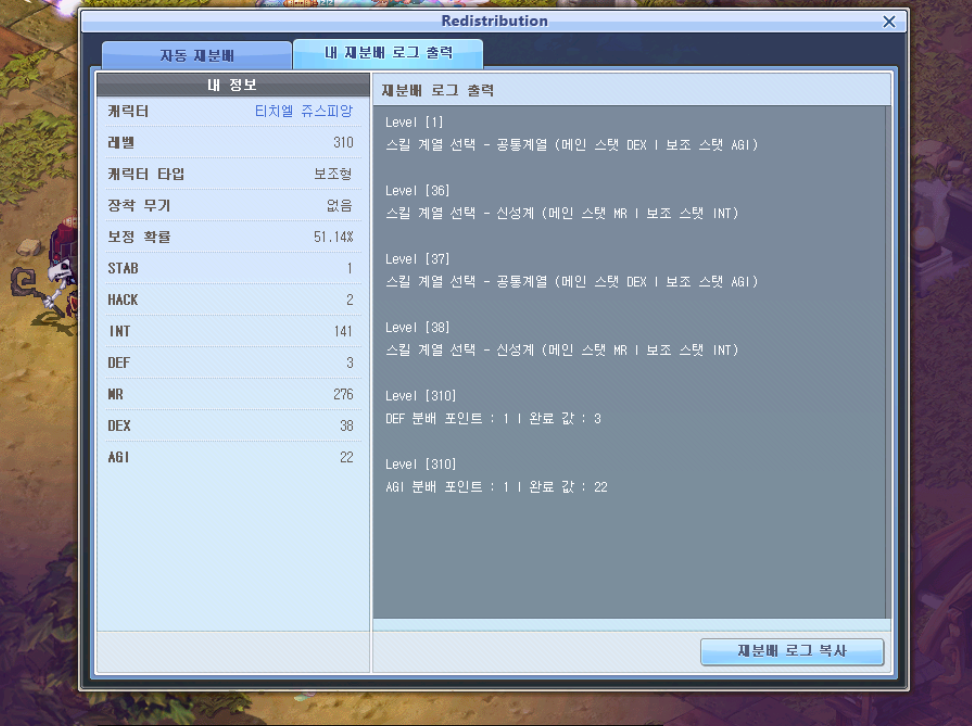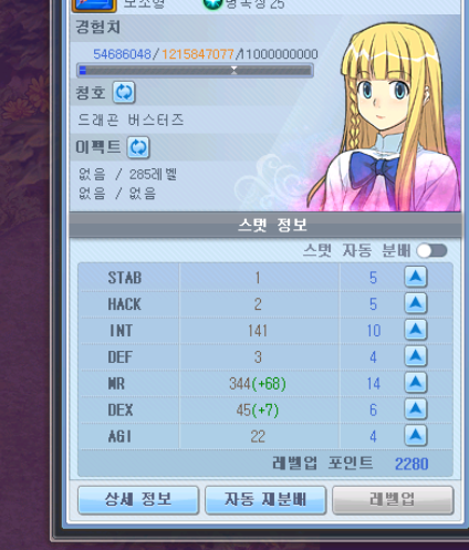재분이 되다 만 것 처럼 스탯포인트가 대부분 찍혀있지 않아요 ㅠ