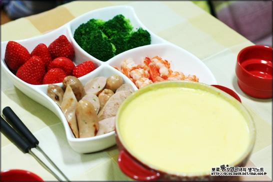 재빠르게 녹인 치즈퐁듀를 놓고서 얌얌 맛있게 먹어주면 됩니당~ㅎㅎ