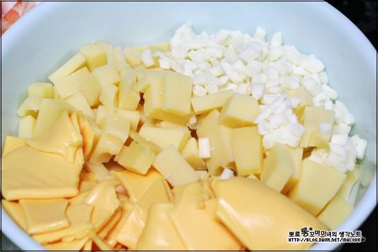 그리고 맛이 강한 슬라이스를 치즈를 너무 많이 넣으면 그 짠맛이 고스란히 나오므로 적당히만 넣으세요. 모짜렐라 치즈 넣으면 맛이 좀더 좋겠지만..거..비싸더군요 ㅡ_ㅡ;;
