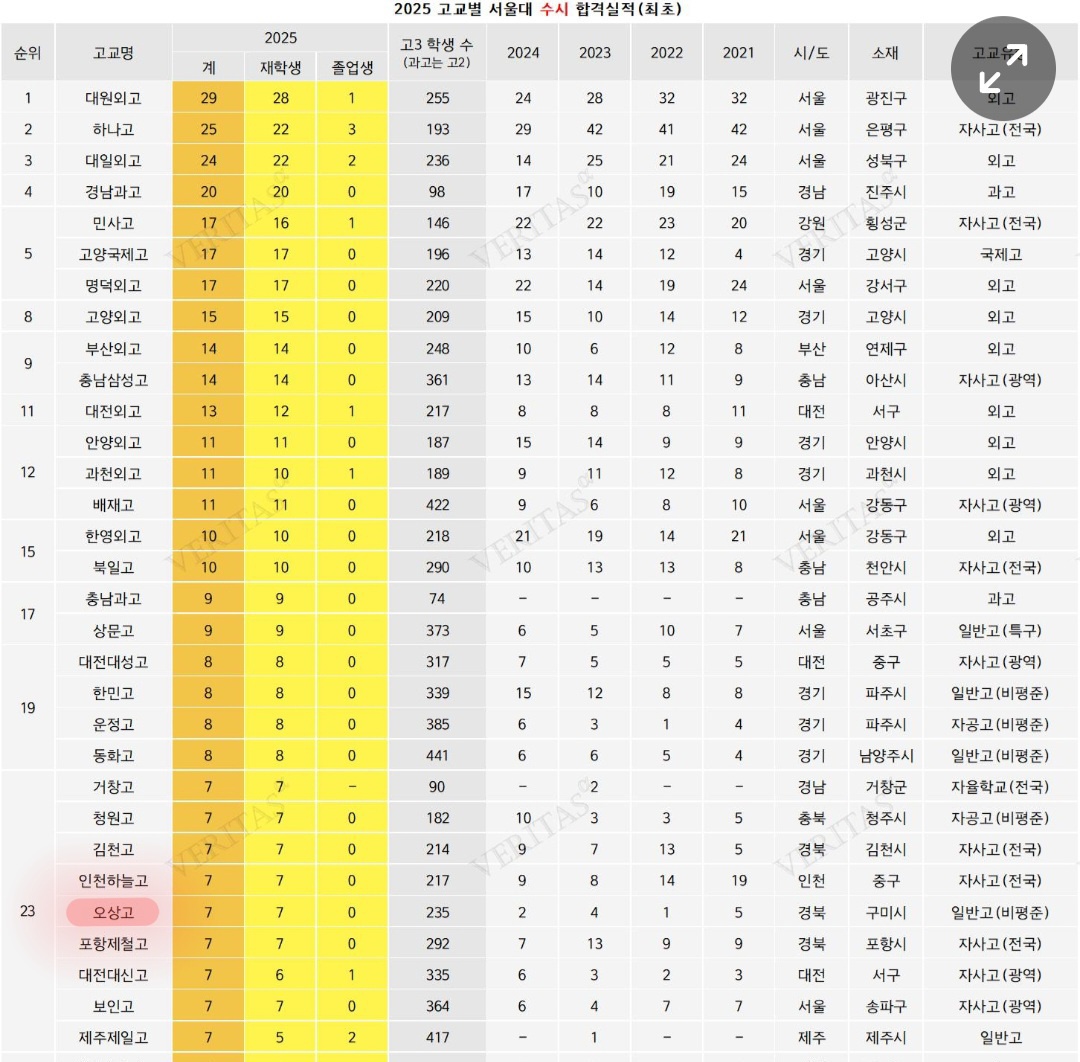 #2025학년도 상위권 고등학교 서울대 수시 합격자 현황에 대한 소고