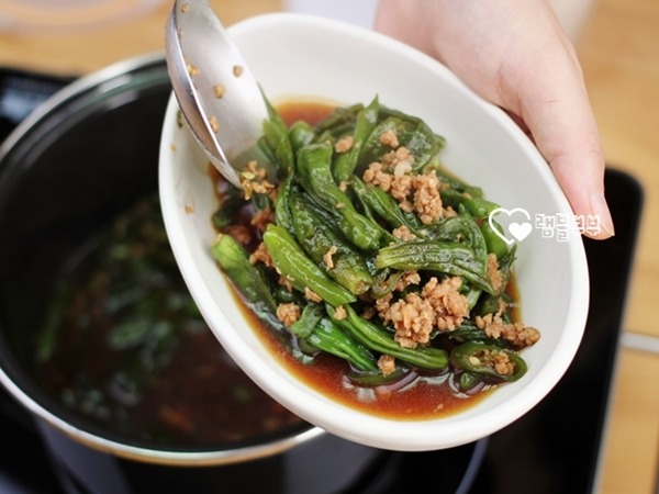 * 꽈리고추조림 (약 6인분) 꽈리고추 145g, 청양고추 3개(20g), 만능간장 150ml, 물 150ml, 설탕10ml
