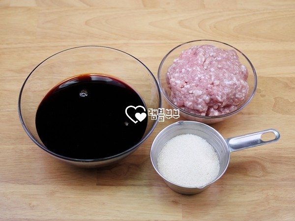 아 저는 돼지고기간것을 100g 더 넣고 만들었어요!!! 냉장고에 400g이 남아 있어서요.