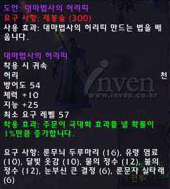 - 사용 용도 : 여러 재료로 쓰이며 대마법사의 허리띠 재료로 사용,