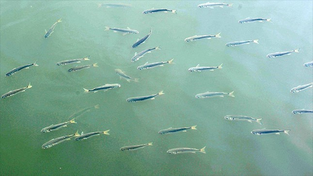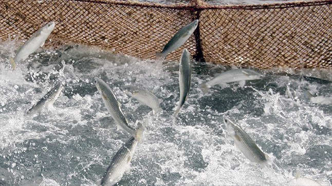 숭어가 뛰는 모습. 사진은 가두리 양식장에서 키우고 있는 숭어들의 모습
