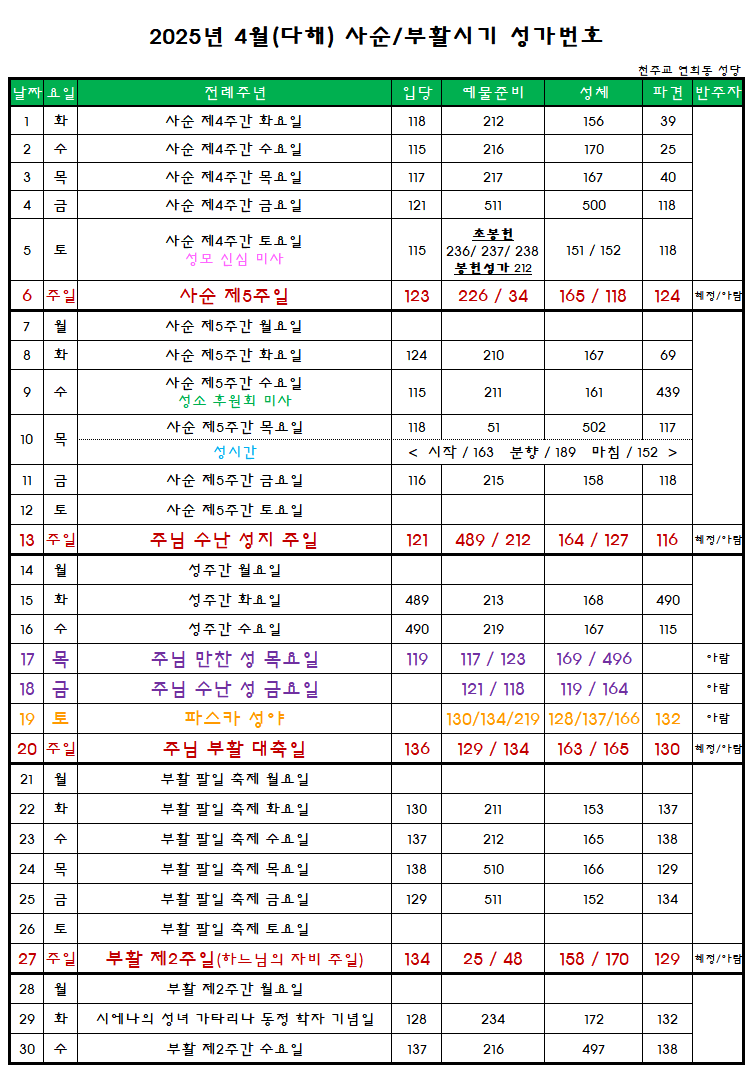 [4월]2025년 4월(다해) 사순/부활시기 성가번호 작성자이은정 로즈마리|작성시간25.04.01|조회수58 목록 댓글 0 글자크기 작게가 글자크기 크게가 4월 성가번호입니다~^^ 다음검색 현재 게시글 추가 기능 열기 북마크 공유하기 신고 센터로 신고 댓글 댓글 0 댓글쓰기 답글쓰기 댓글 리스트