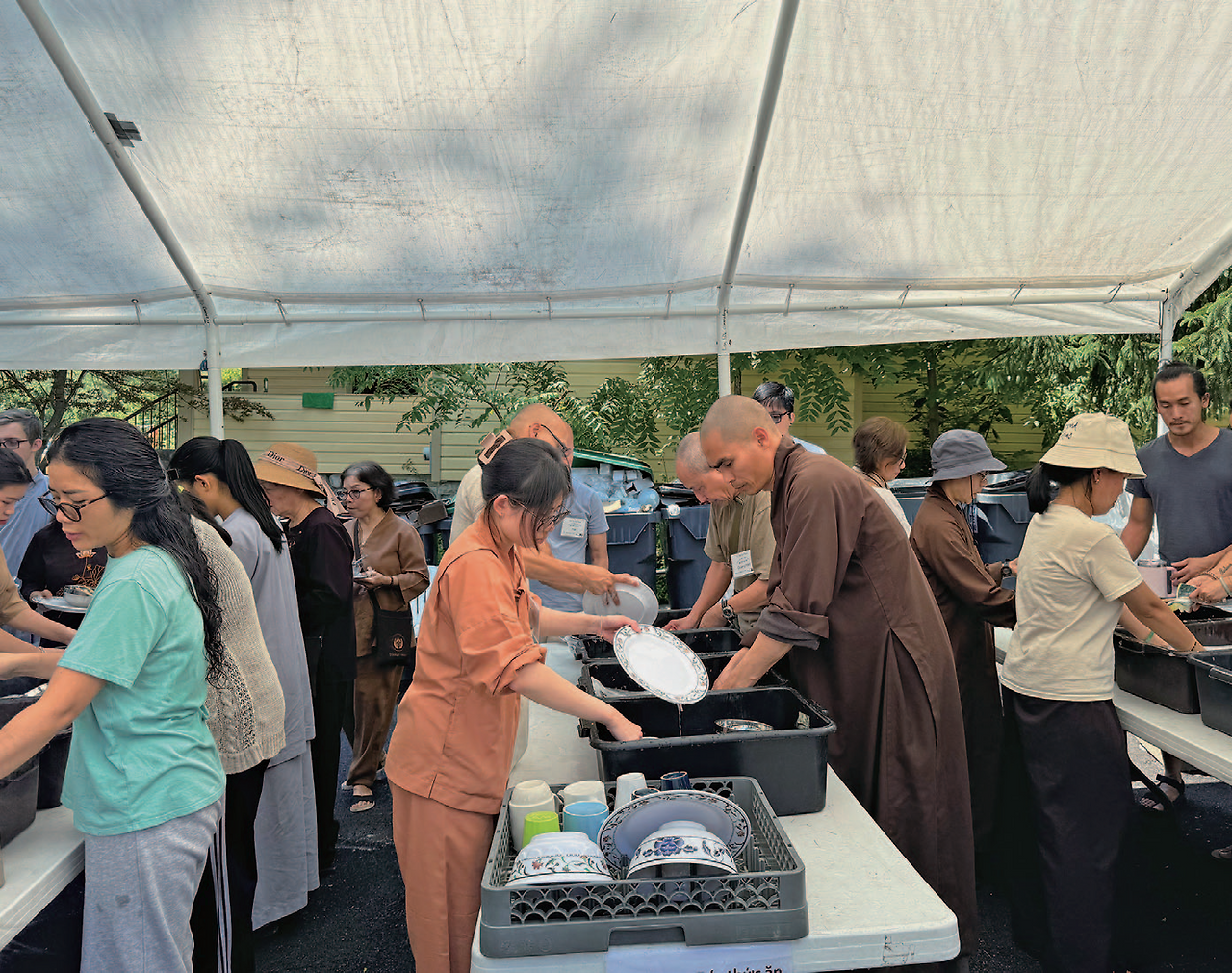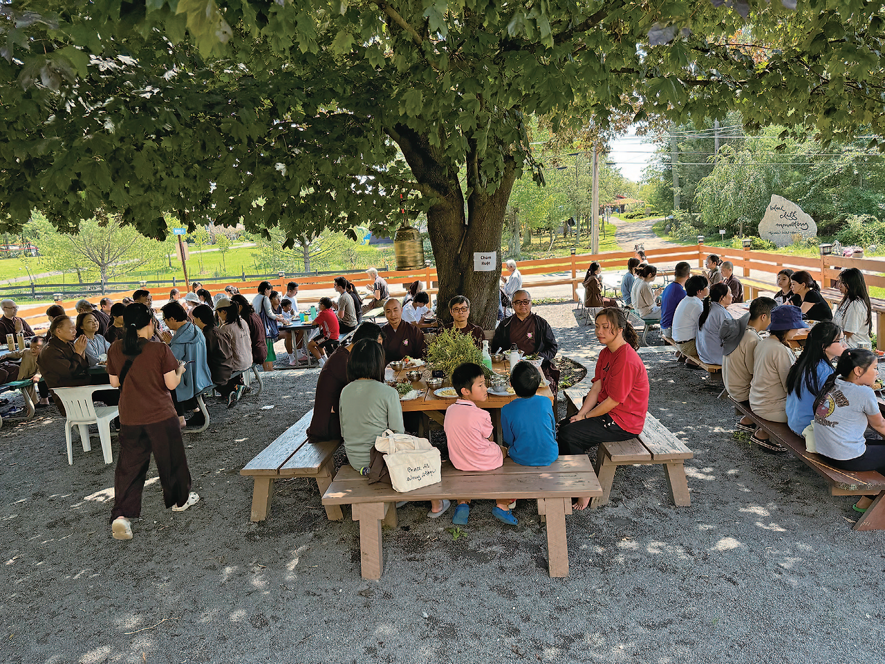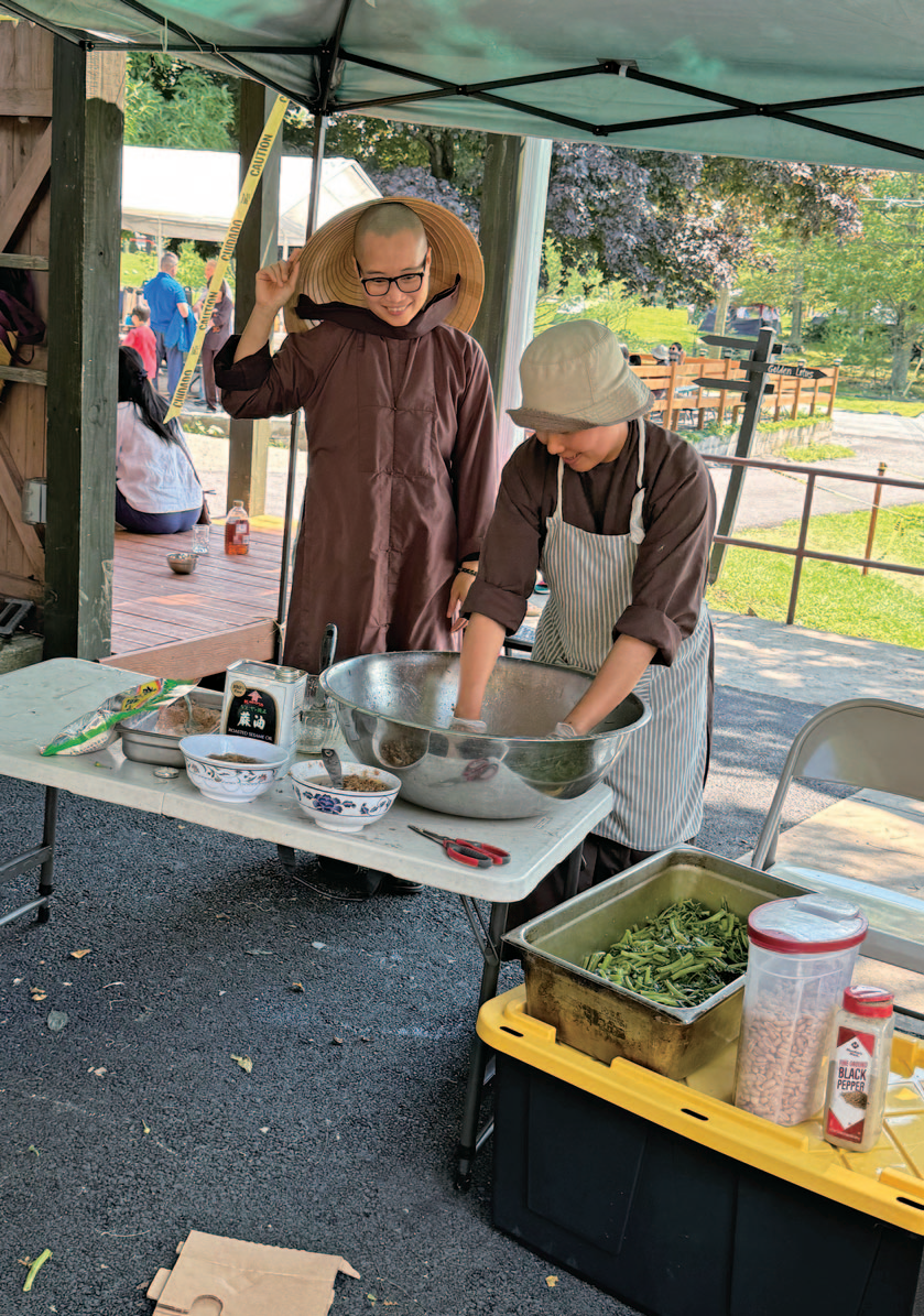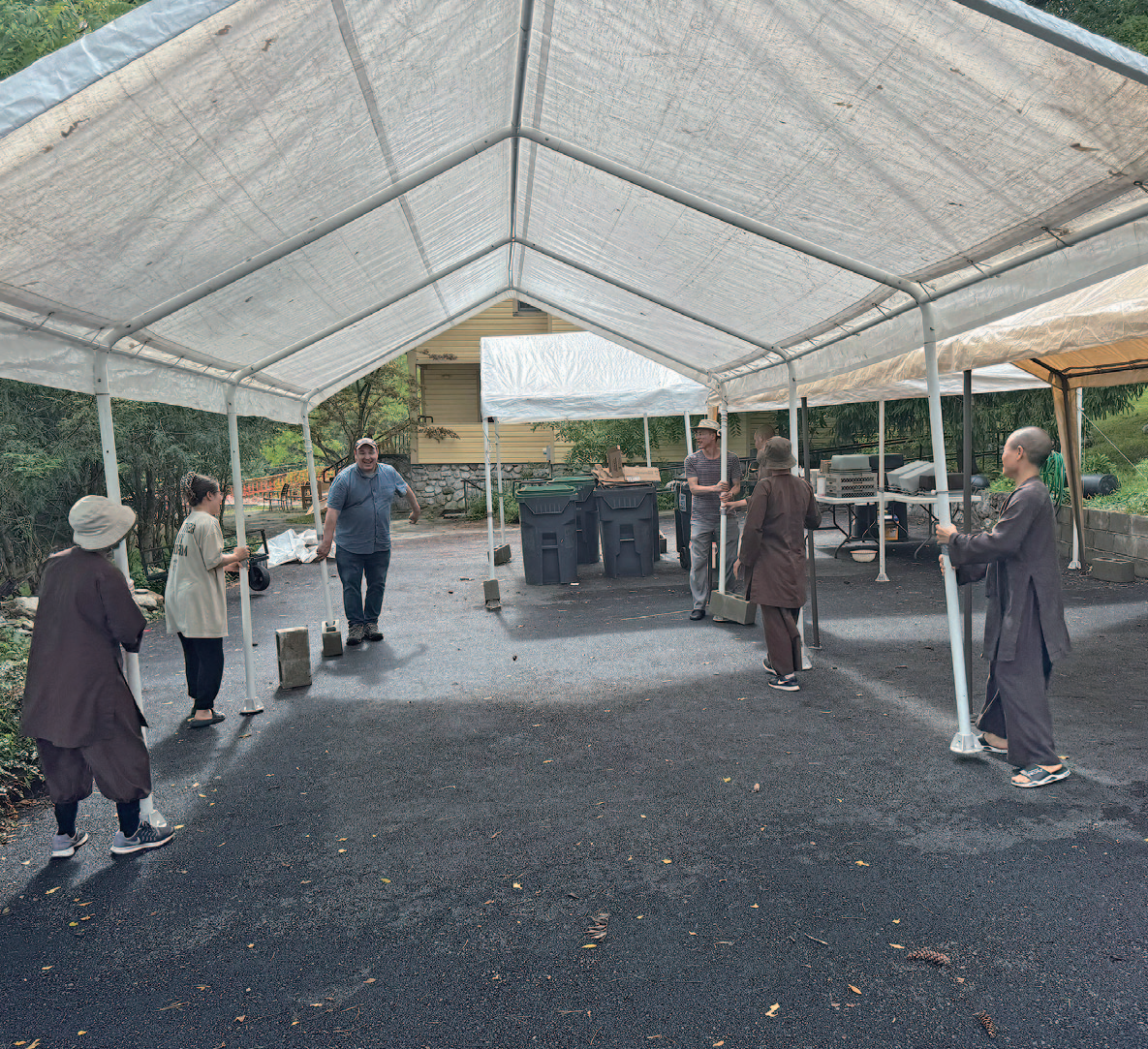 오늘 8월 10일 토요일 5일간 진행되는 뉴욕 벽암원 수련회에 가서 취재를 하였다. 이 곳은 80에이커(약 10만평)로 수도원 여기저기에 텐트가 많이 설치되어 있었고, 수도원에 여기저기에 사람들이 움직이며 활기에 차 있었다. 한쪽에서는 건물을 짓고 있는데 비구니 스님 숙소를 짓는 중이라고 한다. 이 수련회는 8월 7일부터 11일까지 5일간 하는데 미국에서 많이 오지만 프랑스를 비롯해 유럽과 베트남, 카나다 등에서도 참가자들이 왔다. 총 460명이 왔고, 이 프로그램을 진행하는 스님들은 40명이라고 한다. 모두 500명이다. 이중 청소년 참가자는 70명인데 어린이들도 많이 보였다. 30대, 40대, 50대가 특히 많이 보였다. 대부분의 베트남 계열 사찰에 가보면 가족단위로 오는 사람들이 많다. 3세대가 함께 오는 경우도 종종 있다고 한다. 이 행사는 베트남 사람들을 위한 행사였기에 백인 참가자들은 많지 않고, 가끔 눈에 띄었는데 그들 중에는 기독교인도 있다. 이들은 불교와 기독교를 다 받아들이는데 하나님은 있다고 생각하는 사람들이다. 참가비는 싸지가 않다. 성인은 하루에 $120 이다. 이곳에 크고 작은 건물이 15개 정도 있는데 방이 부족하기 때문에 텐트를 가져오는 사람들과 학생들에게는 할인이 있다. 부부와 지녀가 함께 와서 5일간 참가하면 최소 $1,200는 된다. 식구가 많아지면 2천 달러도 될 것 같다.
