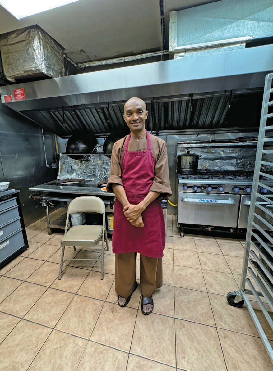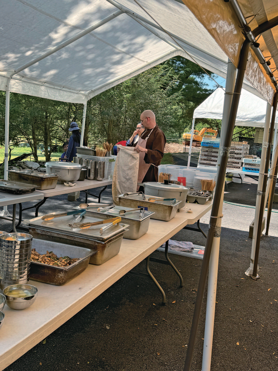 앞치마 두르고 일하는 미국인 스님