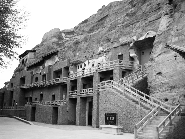 점심 식사 후 우리는 둔황의 보물 막고굴(莫高窟)로 향했다. 막고굴은 ‘사막의 높은 곳’이라는 뜻이다. 백양나무 사이로 모습을 드러낸 막고굴은 5층 높이에 길이가 1.8㎞에 이르는 기다란 동굴지대다. 많은 승려들이 사막의 모래바람을 피해 굴을 파서 수행하던 곳이지만, 불교미술이 화려하게 꽃핀 동서양 문화의 용광로였다. 둔황은 8세기 말에 토번에 의해 점령당하고, 11세기 초 다시 서하의 지배에 들어간 뒤 쇠락의 길을 걸었다. 막고굴이 만들어지기 시작한 것은 진(秦)나라 때인 서기 366년부터이며 그 후 원나라 때까지 1,000년 동안 계속 이어졌다. 모두 합해 1,000개 이상의 굴이 있었다고 하는데 현재는 492개의 석굴이 보존되어 있다. 모든 석굴에 화려한 벽화가 있으며 1987년 유네스코 세계문화유산으로 지정되었다. 당나라 때 232개, 송나라 때 98개, 수나라 때 79개의 석굴이 만들어졌다. 제작 시기에 따라 복장, 생활 모습 등이 달라지는 것을 볼 수 있어서 문화의 변천을 연구하는 데 중요한 자료가 되고 있다.