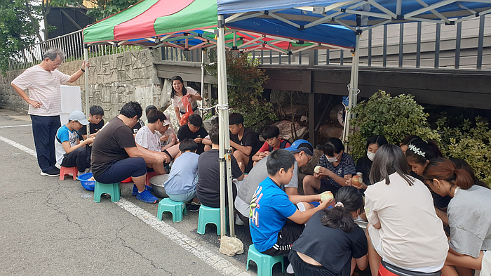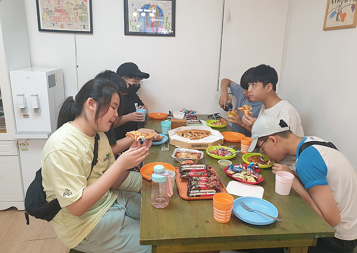 민들레꿈 밥집 아이들이 행복해하며 함께 어울러져 맛있는 도시락과