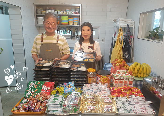 작성자바닐라랄라 작성시간 23.10.02 아이들에게 맛있는 도시락과 과자세트 선물하는 모습이 멋집니다.