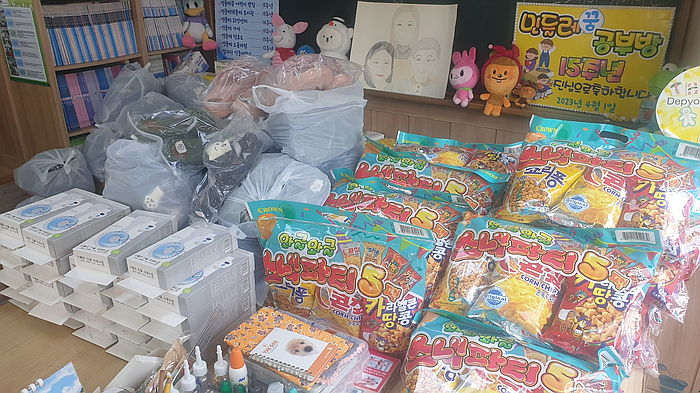 장난감과 과자선물상자 보냅니다. 힘내세요 -