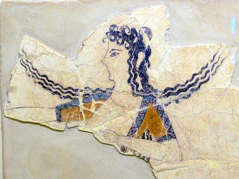 유럽 문명의 기원인 크레타 섬을 중심으로 한 미노아 문명은 수천 년 전 문자를 읽고 쓸 수 있었던 청동기시대의 고도화된 문명이었다. 그림은 한 여성이 춤을 추는 모습으로 기원 전 1600~1450년 경의 프레스코 벽화 조각. Credit: Photo by Wolfgang Sauber is licensed under CC BY-SA 3.0
