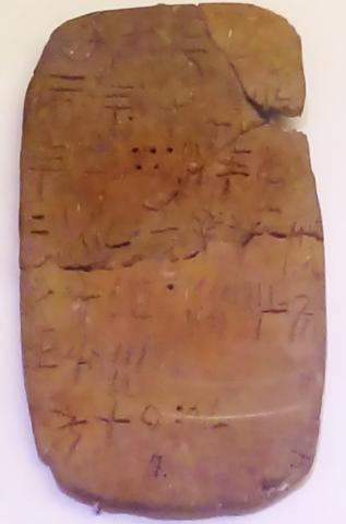 기원 전 15 세기 경 크레타섬 Hagia Triada에서 나온 점토 태블릿 비문. 이 미노아 인들의 언어는 아직 해독되지 못 했다. Credit : Wikipedia Commons / Y-barton
