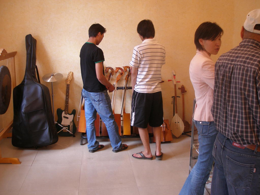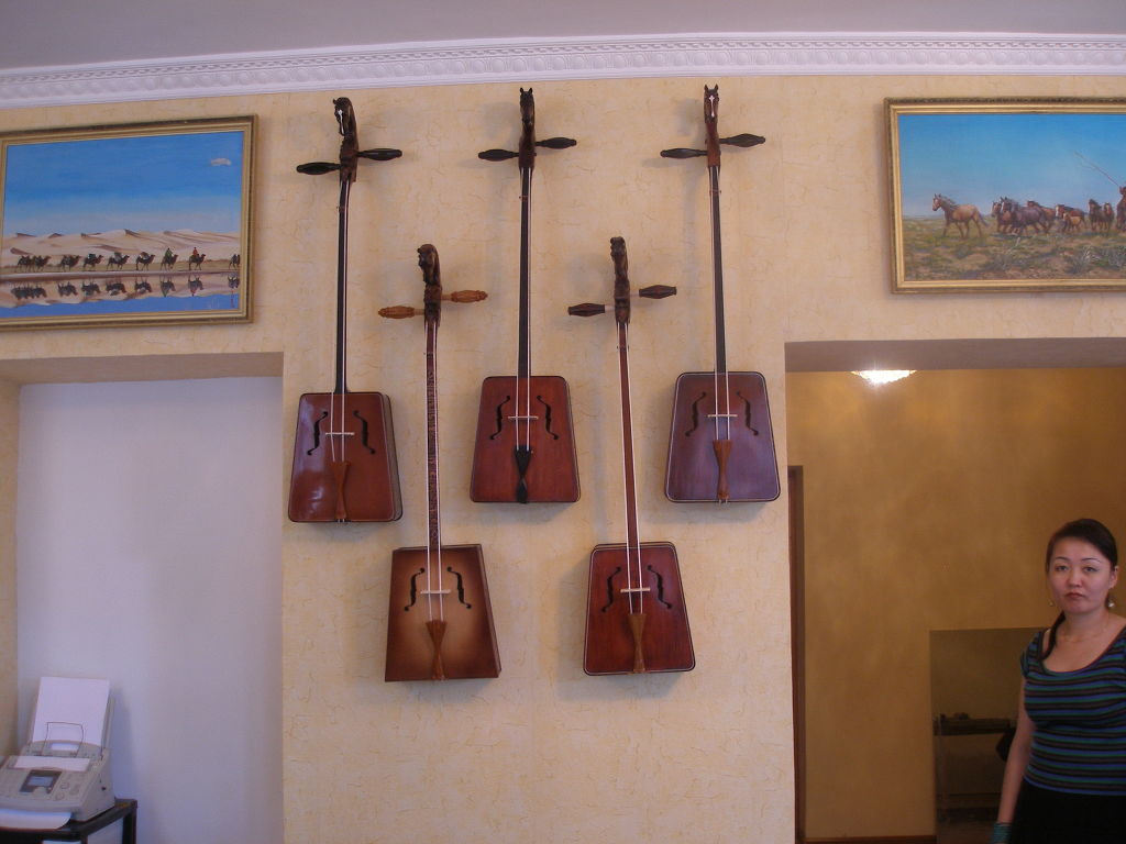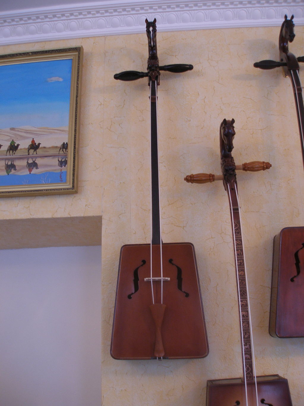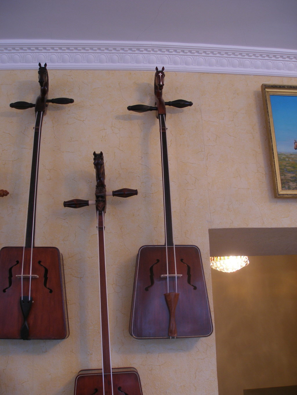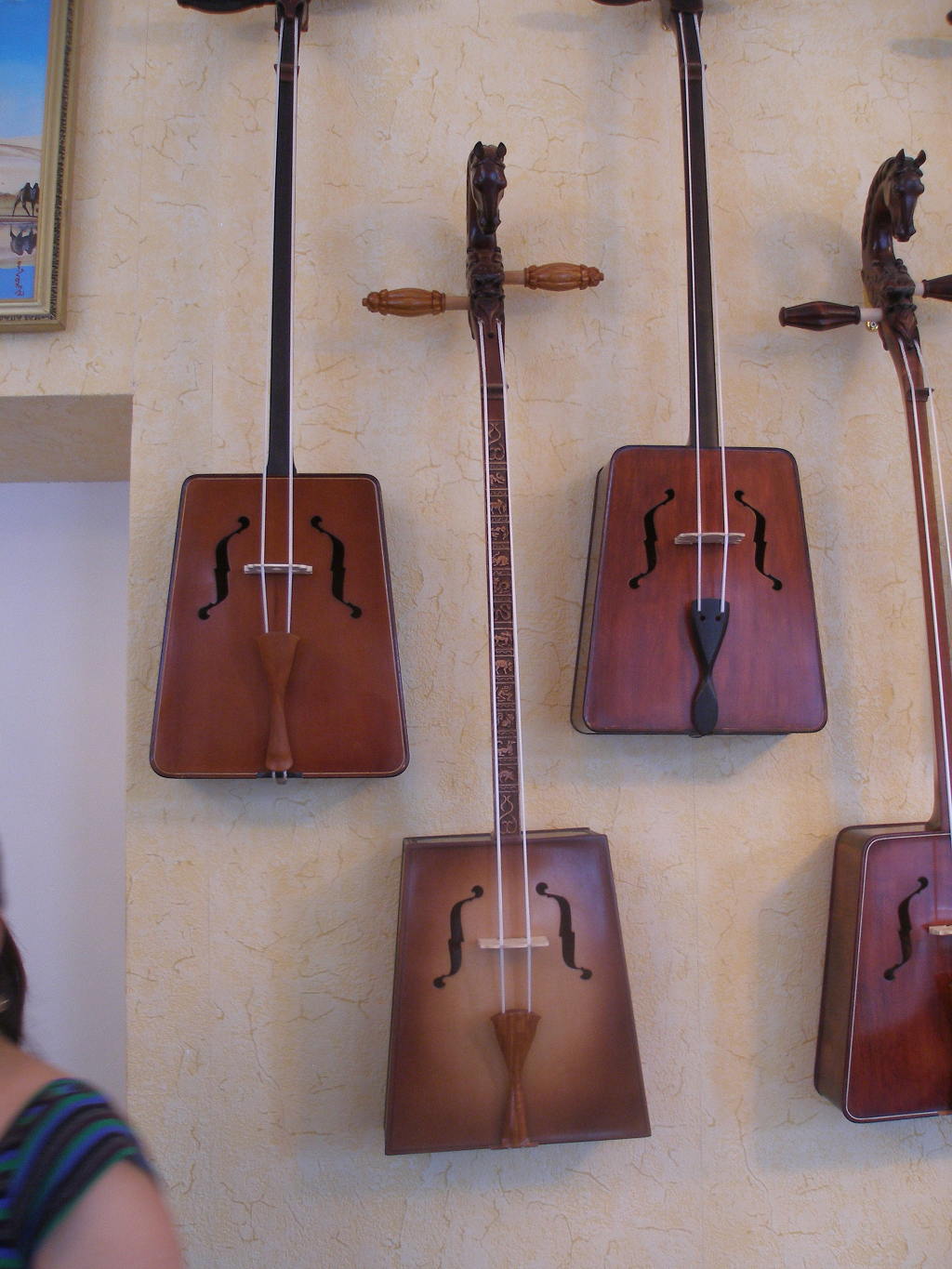 전시된 머랜호르를 보고 있는 청년들... 초,중급용이고 가격은 14만~27만 투그릭입니다. 좌측은 대마두금인데 그날은 케이스에 넣어놓았더군요.. 아쉽게도 우측에 여자분도 영어를 아주 유창하게 하시고 세관에 대해서도 자세히 설명해 주시더군요.