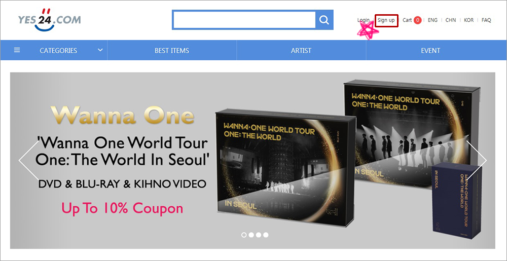 0. まず、https://global.yes24.com(click!) に接続してください。