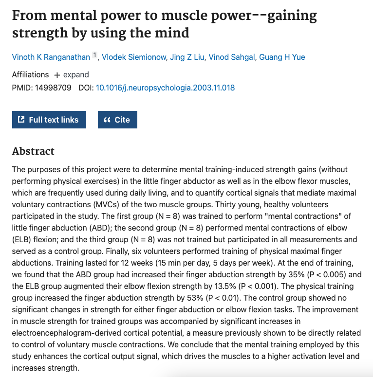 Researchers showed that imagining exercising muscles increased their strength by 13.5%.