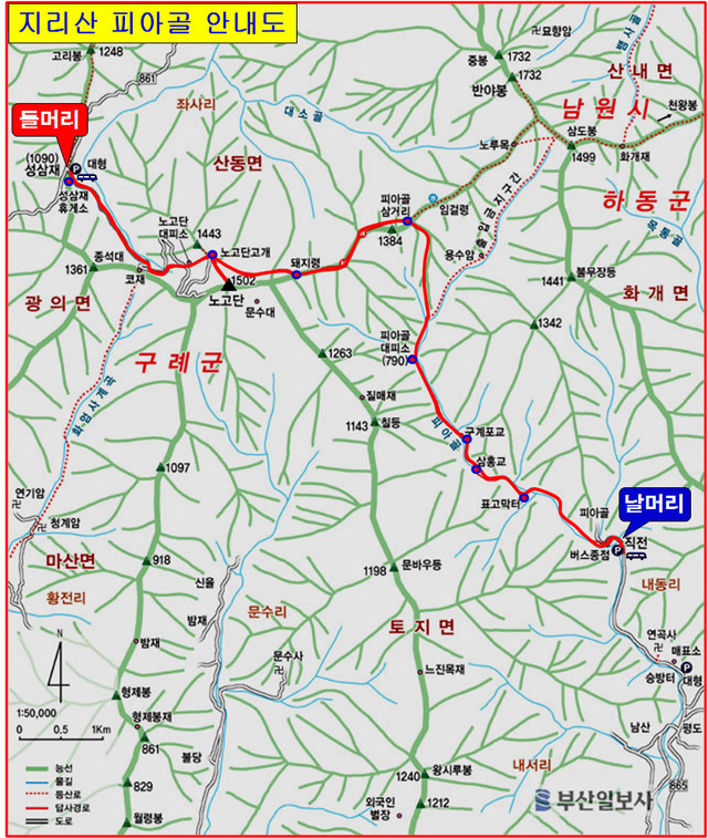 등반코스: 성삼재-노고단-돼지령- 임걸령-피아골산장-직전마을(약5시간