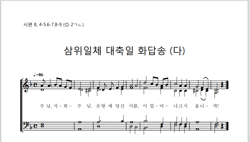 ○ 우러러 당신 손가락으로 빚으신 하늘하며, 굳건히 세우신 달과 별들을 바라보나이다. 인간이 무엇이기에 이토록 기억해 주시나이까? 사람이 무엇이기에 이토록 돌보아 주시나이까? ◎