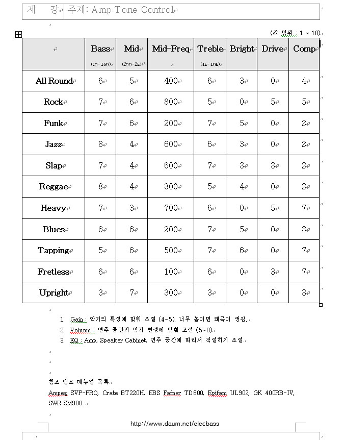 개인적으로는 몇몇 군데가 나의 생각과 조금 다르긴 하지만 앰프 음색 조절에 전혀 감이 없으신 분들은