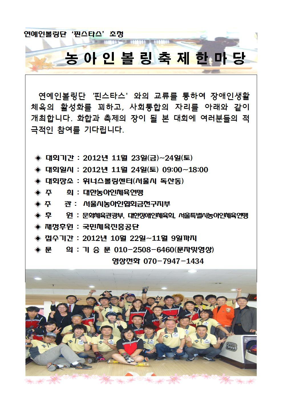 24일(토) 연예인`핀스타스`볼링단초청 농아인볼링축제 한마당 행사 홍보부탁드립니다.^^ 작성자시갈|작성시간12.11.16|조회수293 목록 댓글 1 글자크기 작게가 글자크기 크게가 다음검색 현재 게시글 추가 기능 열기 북마크 공유하기 신고 센터로 신고 댓글 댓글 1 댓글쓰기 답글쓰기 댓글 리스트 작성자볼링선수 | 작성시간 12.11.22 모두다 행복한 추억과 승리하세요.............화이팅....^&^ 댓글 전체보기