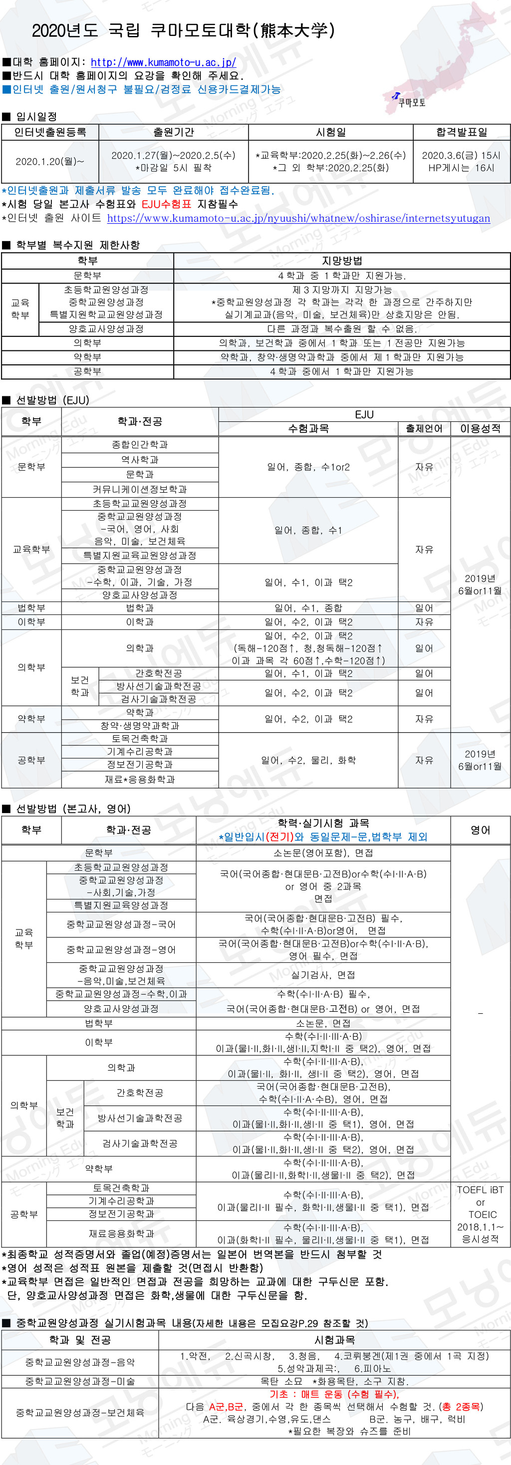 <국립> 2020년도 쿠마모토대학(熊本大学) 작성자모닝에듀(주)|작성시간19.12.07|조회수1,279 목록 댓글 0 글자크기 작게가 글자크기 크게가 2020 쿠마모토 사비유학생 모집요강.pdf 2020 쿠마모토 사비유학생 스포츠력조사서 PDF.pdf 2020 쿠마모토 사비유학생 스포츠력조사서 워드.docx 첨부파일첨부된 파일이 4개 있습니다. pdf 파일 2020 쿠마모토 사비유학생 모집요강.pdf 다운로드 pdf 파일 2020 쿠마모토 사비유학생 스포츠력조사서 PDF.pdf 다운로드 docx 파일 2020 쿠마모토 사비유학생 스포츠력조사서 워드.docx 다운로드 jpg 파일 2020 쿠마모토대학-1 copy.jpg 다운로드 다음검색 현재 게시글 추가 기능 열기 북마크 신고 센터로 신고 댓글 댓글 0 댓글쓰기 답글쓰기 댓글 리스트